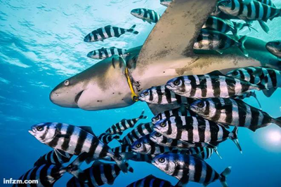 潛水員JacekDybowski來到兄弟島附近的紅海海域潛游,發現了令人心痛的一幕,這頭白鰭鯊的脖子上套著一個塑料環,塑料的邊緣嵌進它的肉里,勒出了了一道深深的傷痕,看上去十分痛苦。